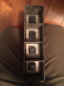 Commercially available soil block makers come in a series of sizes. At Mayetta Farms, we have three different soil block makers. Our smallest one is 3/4″, our next size up is 2″, and our largest is 4″. Each block maker creates a divot in the soil block it makes. The divot on the 3/4″ block maker, is just big enough to plant a seed. However, the divot in the 2″ block maker is a 3/4″ cube shaped divot – just the right size and shape for transplanting your 3/4″ blocks into, once the seedlings start to outgrow them. As you might have guessed, the divot in the 4″ block is a 2″ cube shaped divot – just the right size and shape for transplanting your 2″ blocks into. This process is called “potting up.”